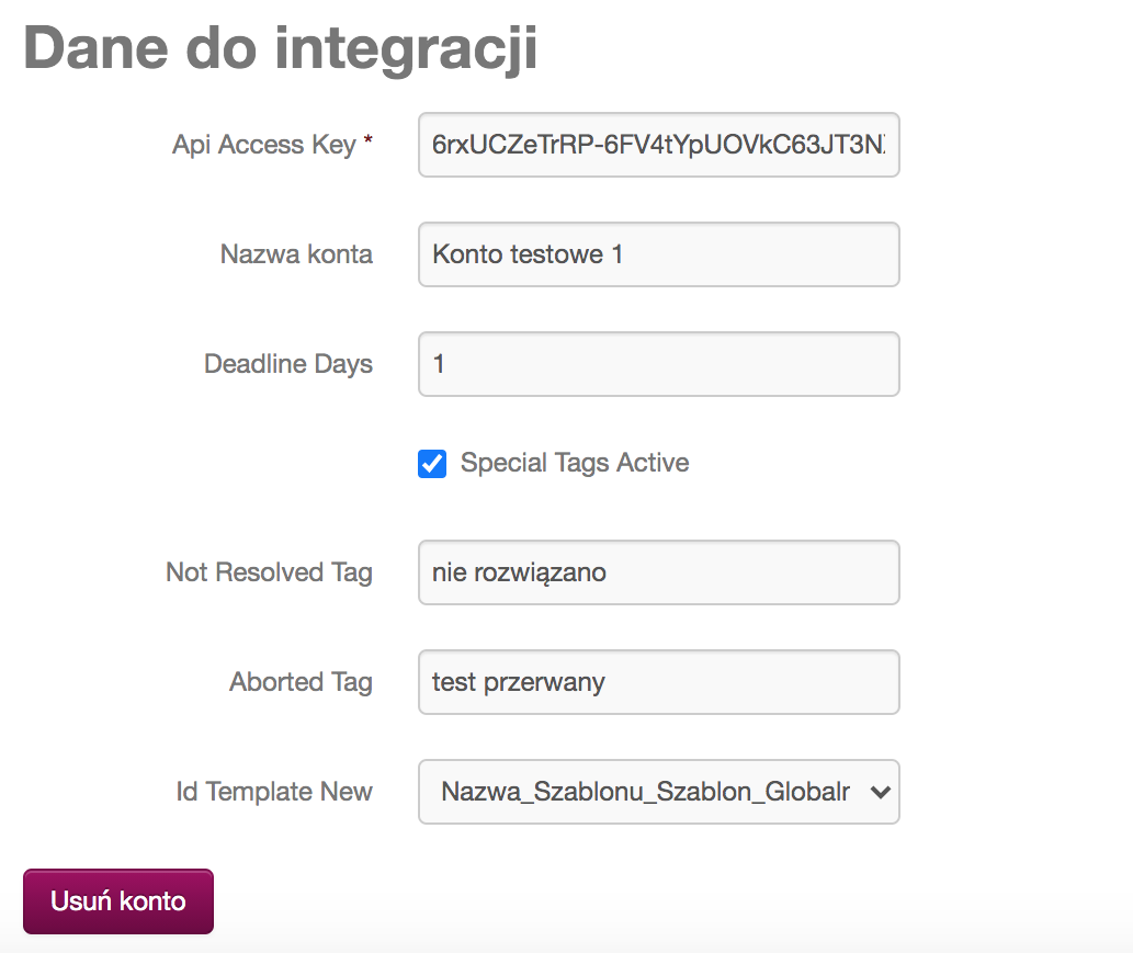 W kolumnie „Szablon wiadomości” możemy zobaczyć, jaki szablon jest przypisany do danego etapu rekrutacyjnego. Standardowo do nowego etapu przypisuje się „Szablon Globalny”, który jest określony w systemie Talent Bridge w zakładce „Ustawienia / integracje” (https://panel.talentbridge.pl/settings/data/integration.html) – w sekcji „Dane do integracji”, w polu „Id Template New”.