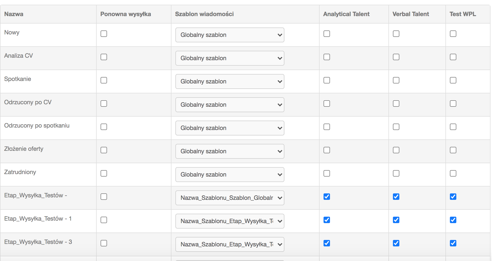 2. Po dodaniu nowego etapu w ciągu 10 minut pojawi się on w systemie Talent Bridge. Można to sprawdzić w zakładce „Ustawienia / integracje” (https://panel.talentbridge.pl/settings/data/integration.html) po kliknięciu przycisku „Etapy rekrutacji” – nazwa nowego etapu będzie w kolumnie „Nazwa”.